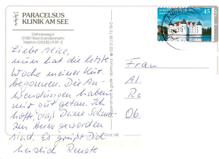 73945093 alte Postkarte Bad Gandersheim Paracelsus Klinik am See Hallenbad postalisch gelaufen Erhaltung siehe scans [FriedD77] KatCode: 11110003155001