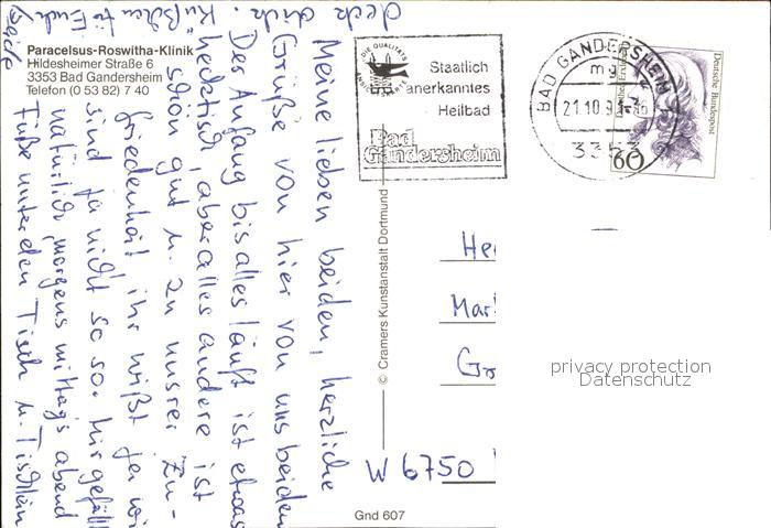 72494312 alte Postkarte Bad Gandersheim Paracelsus Roswitha Klinik postalisch gelaufen Erhaltung siehe scans KatCode: 11110003155001
