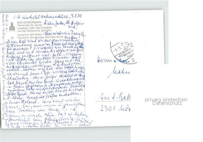 72390035 alte Postkarte Bad Gandersheim Pfarrkirche innen postalisch gelaufen Erhaltung siehe scans KatCode: 11110003155001