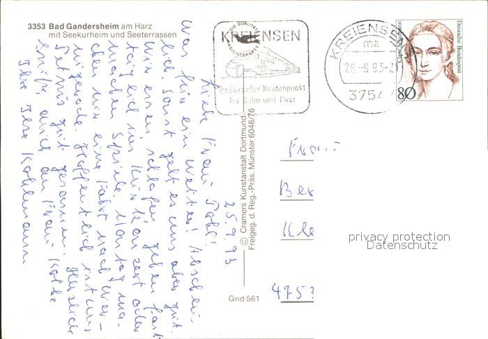 72276631 alte Postkarte Bad Gandersheim Seekurheim Seeterassen postalisch gelaufen Erhaltung siehe scans KatCode: 11110003155001