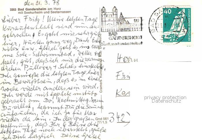 72772379 alte Postkarte Bad Gandersheim Seekurheim Seeterrassen postalisch gelaufen Erhaltung siehe scans [AndreD76] KatCode: 11110003155001