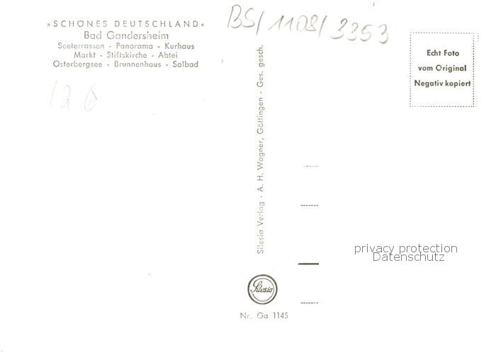 73868866 Bad Gandersheim Seeterrassen Panorama Kurhaus Markt Stiftskirche Abtei Osterbergsee Brunnenhaus Solbad postalisch nicht gelaufen Erhaltung siehe scans [WerneD78] KatCode: 11110003155001