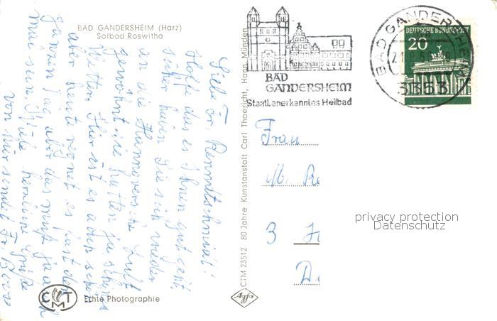 73812363 alte Postkarte Bad Gandersheim Solbad Roswitha postalisch gelaufen Erhaltung siehe scans [FriedD77] KatCode: 11110003155001