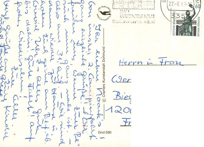 73945083 alte Postkarte Bad Gandersheim Stiftskirche Roswitha-Brunnen Luftbild Abtei Kurhaus Kurpark Markt postalisch gelaufen Erhaltung siehe scans [FriedD77] KatCode: 11110003155001