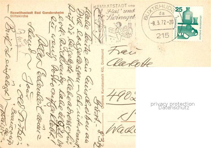 73126599 alte Postkarte Bad Gandersheim Stiftskirche Roswithastadt postalisch gelaufen Erhaltung siehe scans [FriedD77] KatCode: 11110003155001