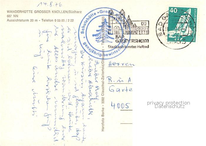72942618 alte Postkarte Bad Gandersheim Wanderh?tte Gro?er Knollen postalisch gelaufen Erhaltung siehe scans [LiesaD40] KatCode: 11110003155001