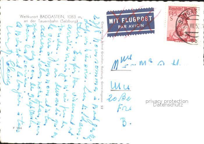 71940545 alte Postkarte Bad Gastein an Tauernbahn postalisch gelaufen Erhaltung siehe scans KatCode: 11390322050403