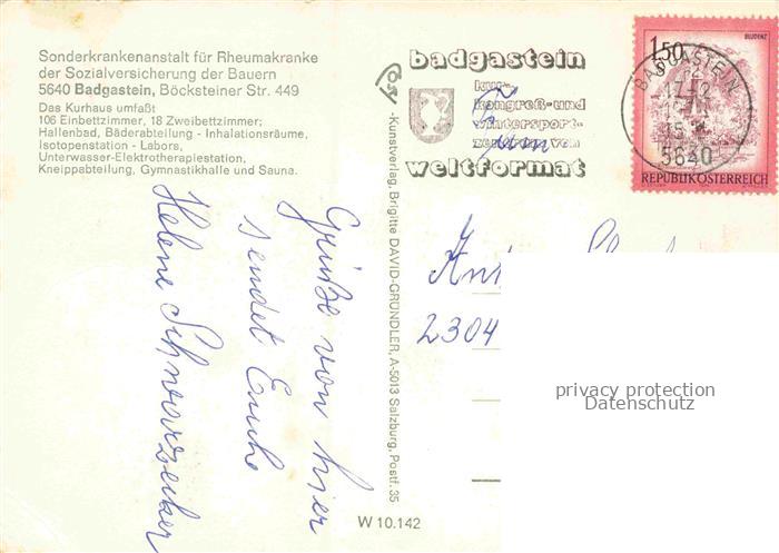 74138839 BAD GASTEIN Badgastein Pinzgau Pongau AT Kurzentrum Sonderkrankenanstalt postalisch nicht gelaufen Erhaltung siehe scans [WerneD78] KatCode: 11390322050403