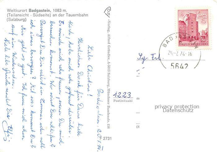 74138856 alte Postkarte BAD GASTEIN Badgastein Pinzgau Pongau AT Ortsansicht postalisch gelaufen Erhaltung siehe scans [WerneD78] KatCode: 11390322050403