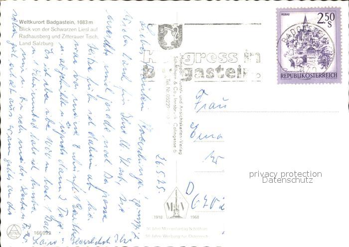 72460544 alte Postkarte Bad Gastein Blick von der Schwarzen Liesl postalisch gelaufen Erhaltung siehe scans KatCode: 11390322050403