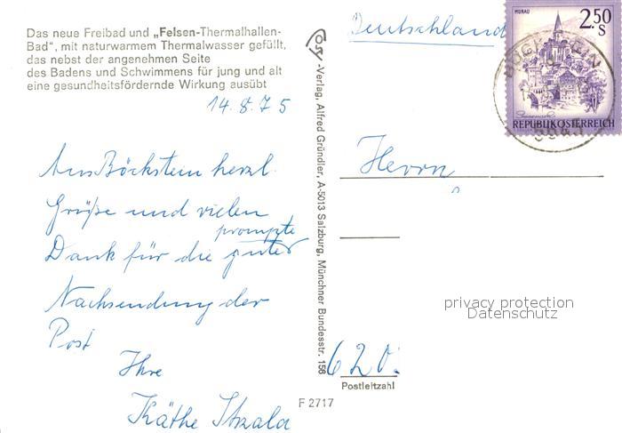 73160907 alte Postkarte Bad Gastein Felsen Thermal Hallenbad mit Freibad postalisch gelaufen Erhaltung siehe scans [WerneD78] KatCode: 11390322050403