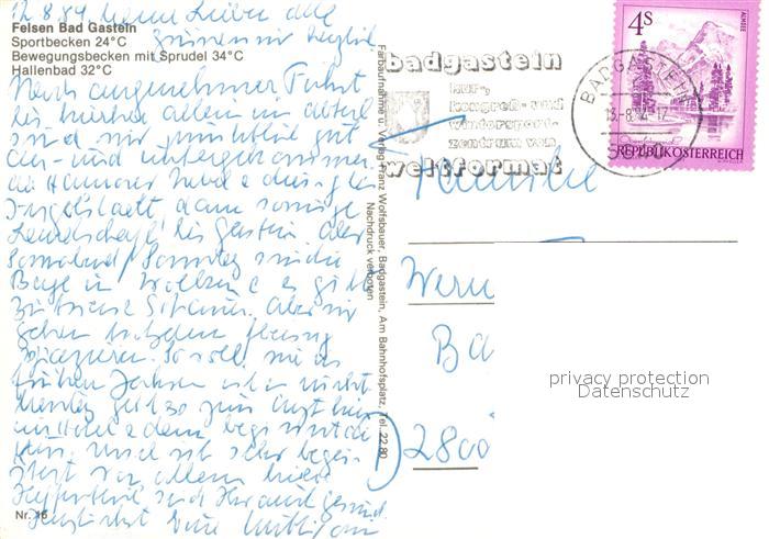 72950728 alte Postkarte Bad Gastein Felsenbad postalisch gelaufen Erhaltung siehe scans [WerneD78] KatCode: 11390322050403