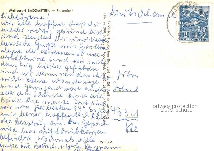 72843660 alte Postkarte Bad Gastein Felsenbad postalisch gelaufen Erhaltung siehe scans [LiesaD40] KatCode: 11390322050403