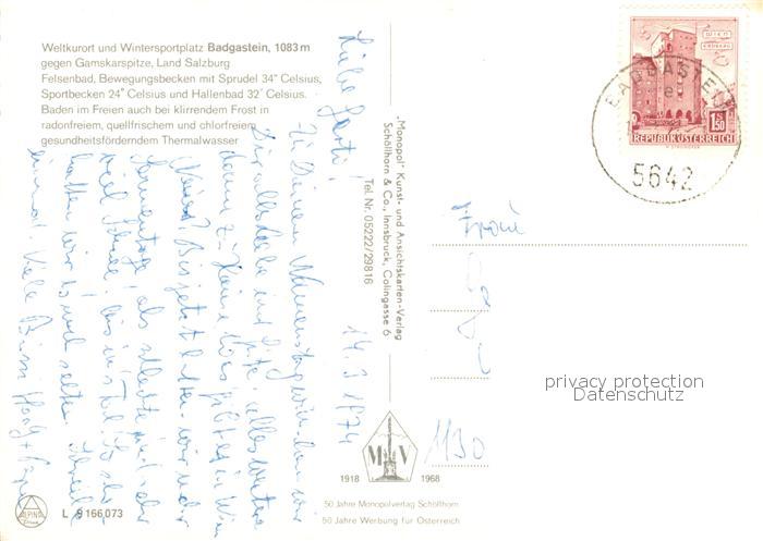 73235397 alte Postkarte Bad Gastein Felsenbad Freibad postalisch gelaufen Erhaltung siehe scans [LiesaD40] KatCode: 11390322050403