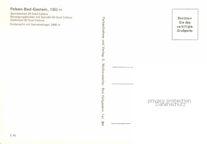 72912184 Bad Gastein Felsenbad Freibad postalisch nicht gelaufen Erhaltung siehe scans [LiesaD40] KatCode: 11390322050403
