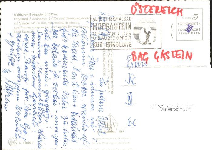 72108318 alte Postkarte Bad Gastein Felsenbad Sportbecken postalisch gelaufen Erhaltung siehe scans KatCode: 11390322050403