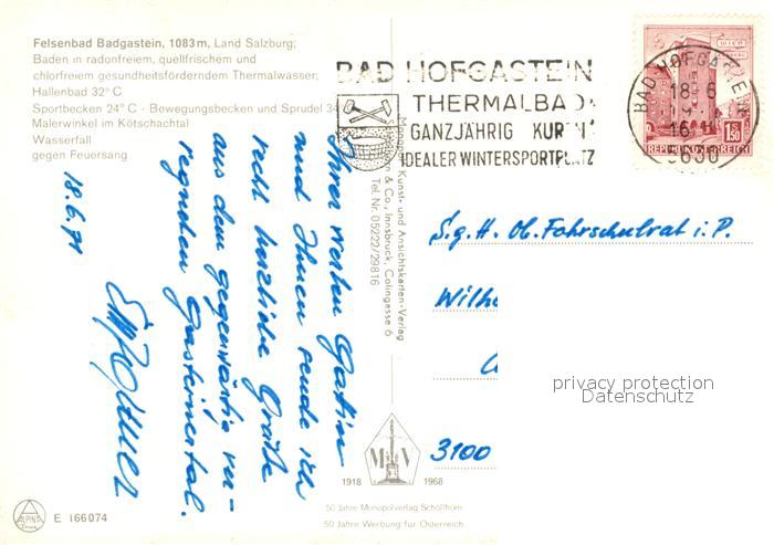 73235417 alte Postkarte Bad Gastein Felsenbad Wasserfall postalisch gelaufen Erhaltung siehe scans [LiesaD40] KatCode: 11390322050403