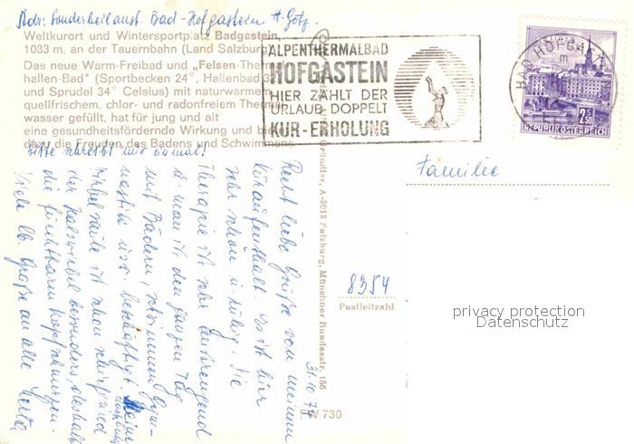 72673311 alte Postkarte Bad Gastein Felsenbad Weltkurort Wintersportplatz an der Tauernbahn postalisch gelaufen Erhaltung siehe scans [FriedD77] KatCode: 11390322050403