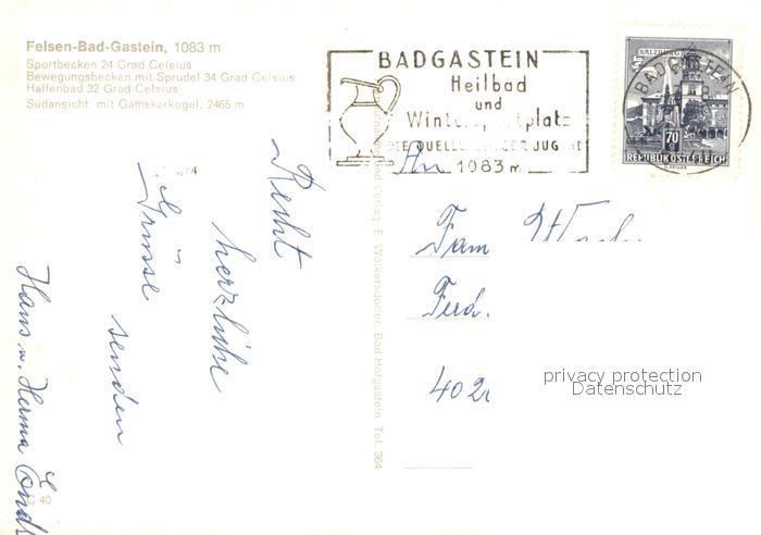 73290003 alte Postkarte Bad Gastein Felsenbad postalisch gelaufen Erhaltung siehe scans [KathaD81] KatCode: 11390322050403