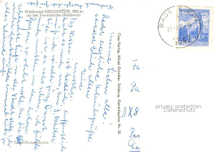 72991593 alte Postkarte Bad Gastein Fliegeraufnahme an Tauernbahn postalisch gelaufen Erhaltung siehe scans [LiesaD40] KatCode: 11390322050403