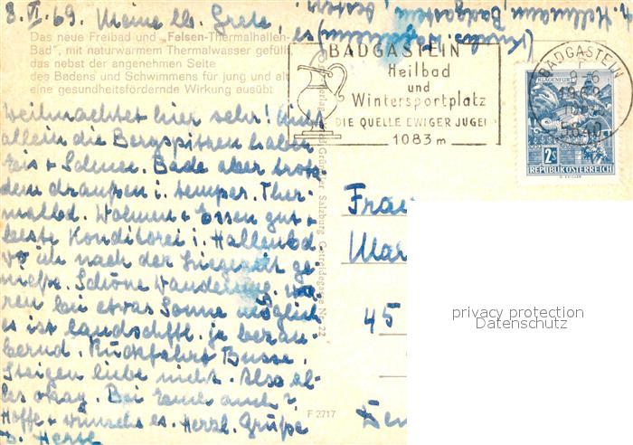 73233502 alte Postkarte Bad Gastein Freibad Felsen Thermalhallenbad postalisch gelaufen Erhaltung siehe scans [FriedD77] KatCode: 11390322050403