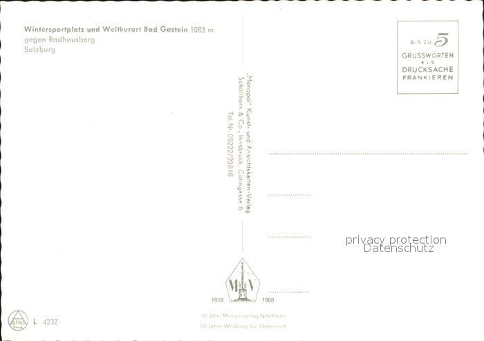 72470064 Bad Gastein gegen Radhausberg postalisch nicht gelaufen Erhaltung siehe scans KatCode: 11390322050403