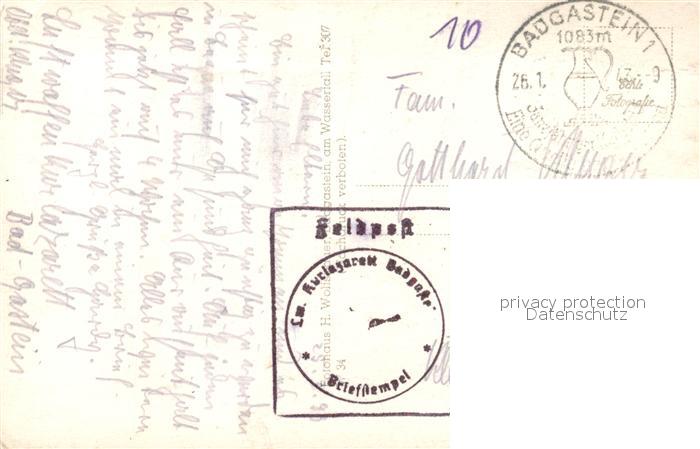 43030867 alte Postkarte Bad Gastein im Winter postalisch gelaufen Feldpost Erhaltung siehe scans [FriedD77] KatCode: 11390322050403