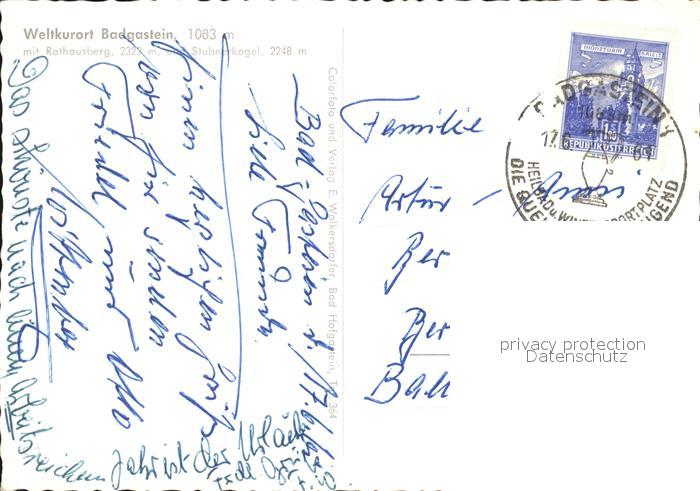72499073 alte Postkarte Bad Gastein mit Rathausberg postalisch gelaufen Erhaltung siehe scans KatCode: 11390322050403