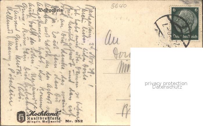 71545070 alte Postkarte Bad Gastein Panorama mit Wasserfall postalisch gelaufen Erhaltung siehe scans KatCode: 11390322050403