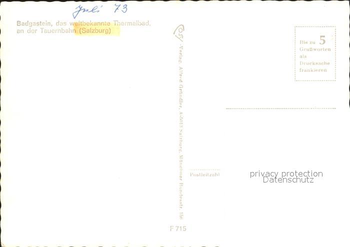 72451878 Bad Gastein Thermalbad Wintersportplatz an der Tauernbahn Alpenblick Gemsen postalisch nicht gelaufen Erhaltung siehe scans KatCode: 11390322050403