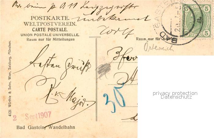 43109646 alte Postkarte Bad Gastein Wandelbahn postalisch gelaufen Erhaltung siehe scans [FriedD77] KatCode: 11390322050403