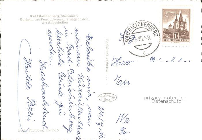 72180156 alte Postkarte Bad Gleichenberg postalisch gelaufen Erhaltung siehe scans KatCode: 11390224060403
