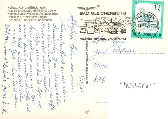 73029668 alte Postkarte Bad Gleichenberg Fliegeraufnahme postalisch gelaufen Erhaltung siehe scans [PaolaD17] KatCode: 11390224060403