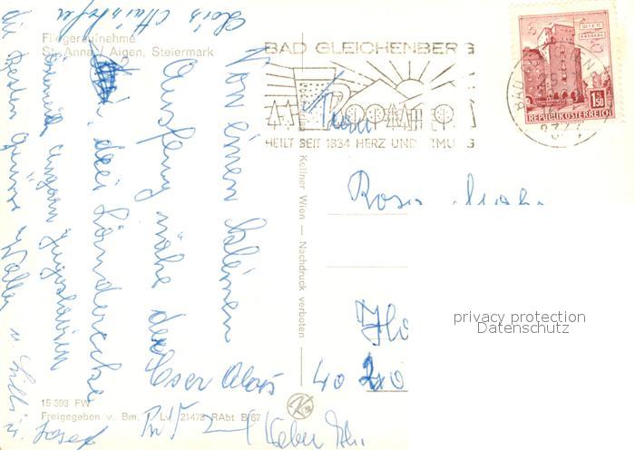 73285106 alte Postkarte Bad Gleichenberg Fliegeraufnahme St. Anna postalisch gelaufen Erhaltung siehe scans [NatalD47] KatCode: 11390224060403