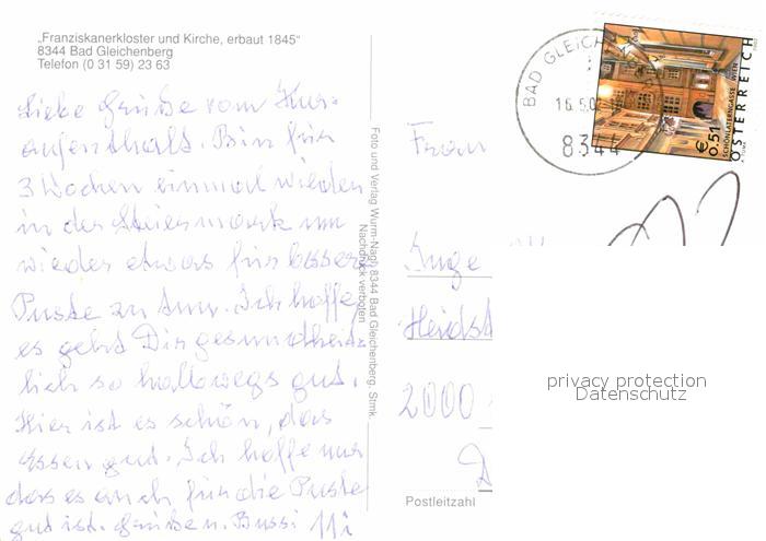 72752685 alte Postkarte Bad Gleichenberg Franziskanerkloster und Kirche postalisch gelaufen Erhaltung siehe scans [LiesaD40] KatCode: 11390224060403