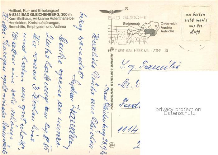 73655263 alte Postkarte Bad Gleichenberg Heilbad Kur- und Erholungsort Kurmittelhaus Fliegeraufnahme postalisch gelaufen Erhaltung siehe scans [FriedD77] KatCode: 11390224060403