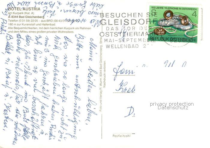 73198160 alte Postkarte Bad Gleichenberg Hotel Austria postalisch gelaufen Erhaltung siehe scans [KathaD81] KatCode: 11390224060403