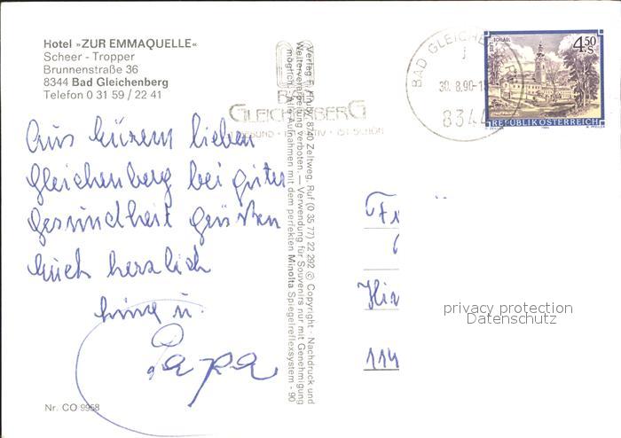 72390858 alte Postkarte Bad Gleichenberg Hotel Zur Emmaquelle postalisch gelaufen Erhaltung siehe scans KatCode: 11390224060403