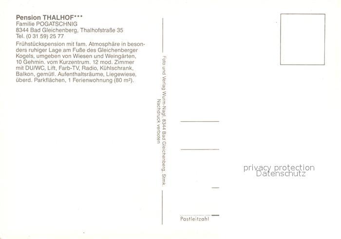 73269227 Bad Gleichenberg Pension Thalhof postalisch nicht gelaufen Erhaltung siehe scans [KathaD81] KatCode: 11390224060403