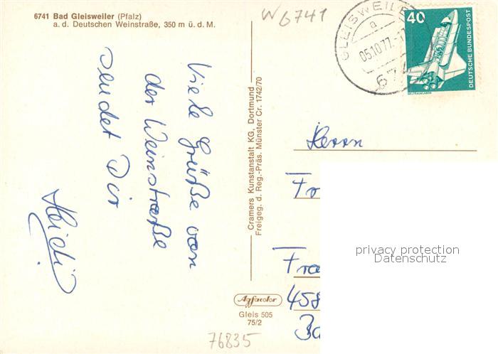 73711269 alte Postkarte Bad Gleisweiler Fliegeraufnahme postalisch gelaufen Erhaltung siehe scans [WerneD78] KatCode: 11110007337028