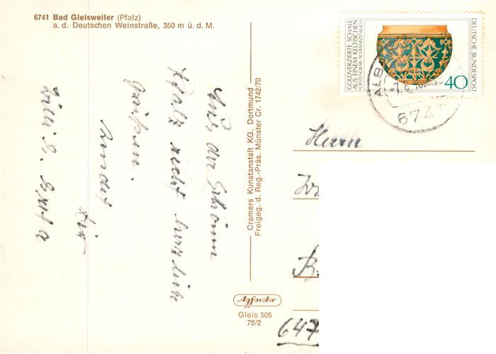 73888864 alte Postkarte Bad Gleisweiler Fliegeraufnahme postalisch gelaufen Erhaltung siehe scans [FriedD77] KatCode: 11110007337028