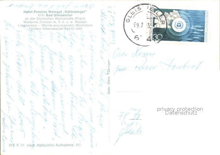 72062447 alte Postkarte Bad Gleisweiler Hotel Pension Weingut Schoensiegel postalisch gelaufen Erhaltung siehe scans KatCode: 11110007337028