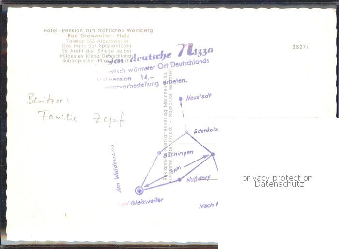 72143765 Bad Gleisweiler Hotel Pension zum froehlichen Weinberg postalisch nicht gelaufen Erhaltung siehe scans KatCode: 11110007337028