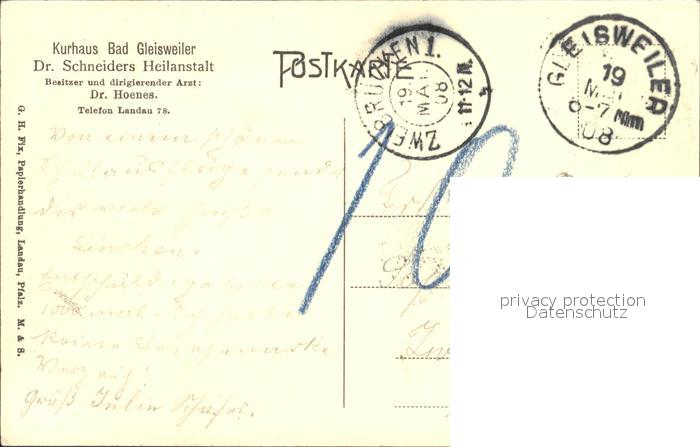 72092626 alte Postkarte Bad Gleisweiler Partie im Kurgarten Kurhaus postalisch gelaufen Erhaltung siehe scans KatCode: 11110007337028