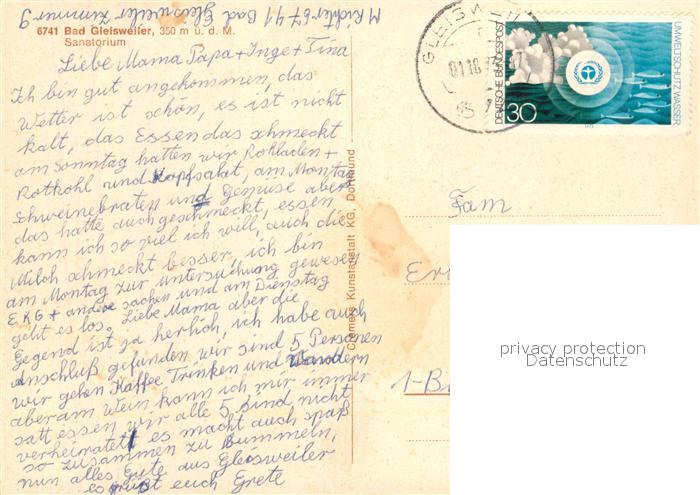 73097783 alte Postkarte Bad Gleisweiler Sanatorium postalisch gelaufen Erhaltung siehe scans [WerneD78] KatCode: 11110007337028
