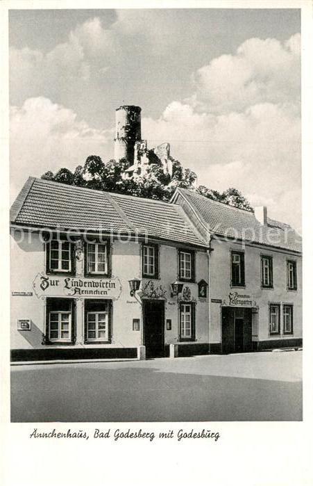 73016617 alte Postkarte Bad Godesberg aennchenhaus Zur Lindenwirtin mit Godesburg postalisch gelaufen Erhaltung siehe scans [WerneD78] KatCode: 11110005314000