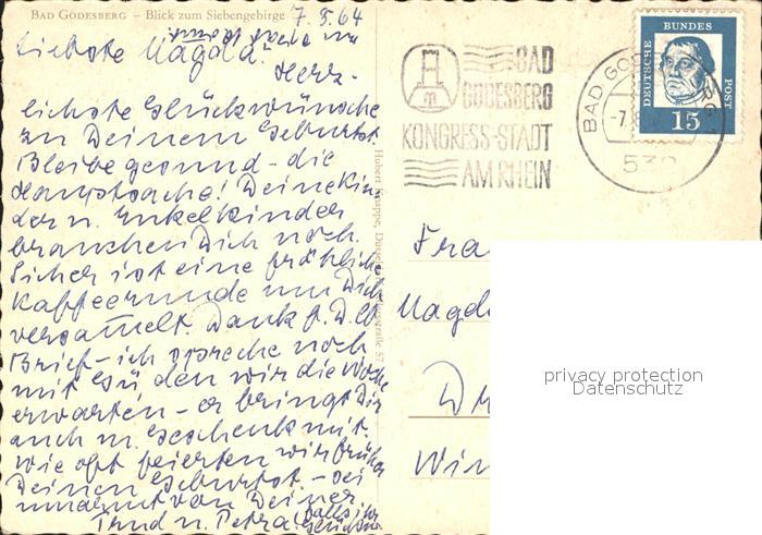 72369877 alte Postkarte Bad Godesberg Blick ueber den Rhein zum Siebengebirge Dampfer postalisch gelaufen Erhaltung siehe scans KatCode: 11110005314000