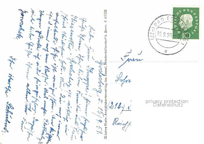 72773210 alte Postkarte Bad Godesberg Blick vom Malerwinkel Rolandsbogen Siebengebirge postalisch gelaufen Erhaltung siehe scans [FriedD77] KatCode: 11110005314000