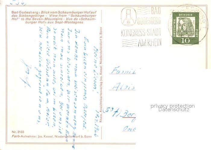 73017686 alte Postkarte Bad Godesberg Blick vom Schaumburger Hof postalisch gelaufen Erhaltung siehe scans [WerneD78] KatCode: 11110005314000