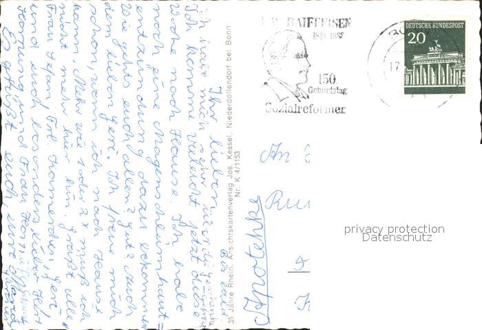 72200388 alte Postkarte Bad Godesberg Blick von Kasselruhe postalisch gelaufen Erhaltung siehe scans KatCode: 11110005314000